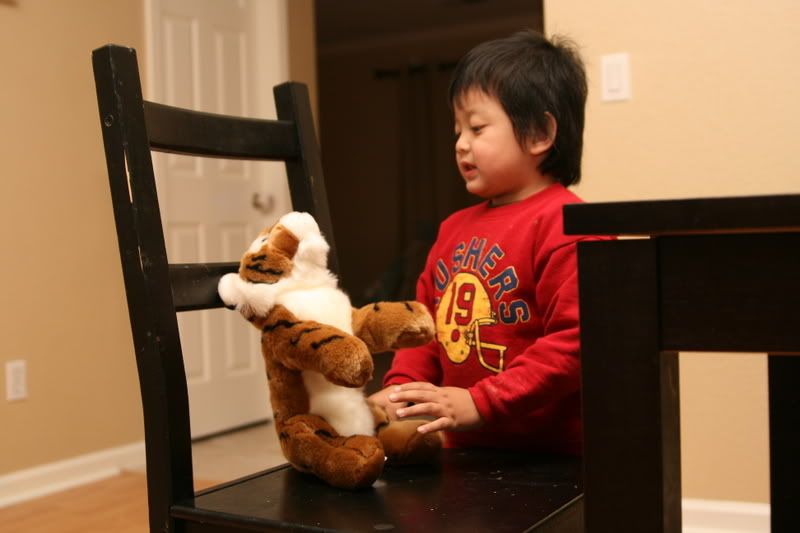 Kaia, making her mad face, wearing the Las Vegas shirt I brought back for her.
